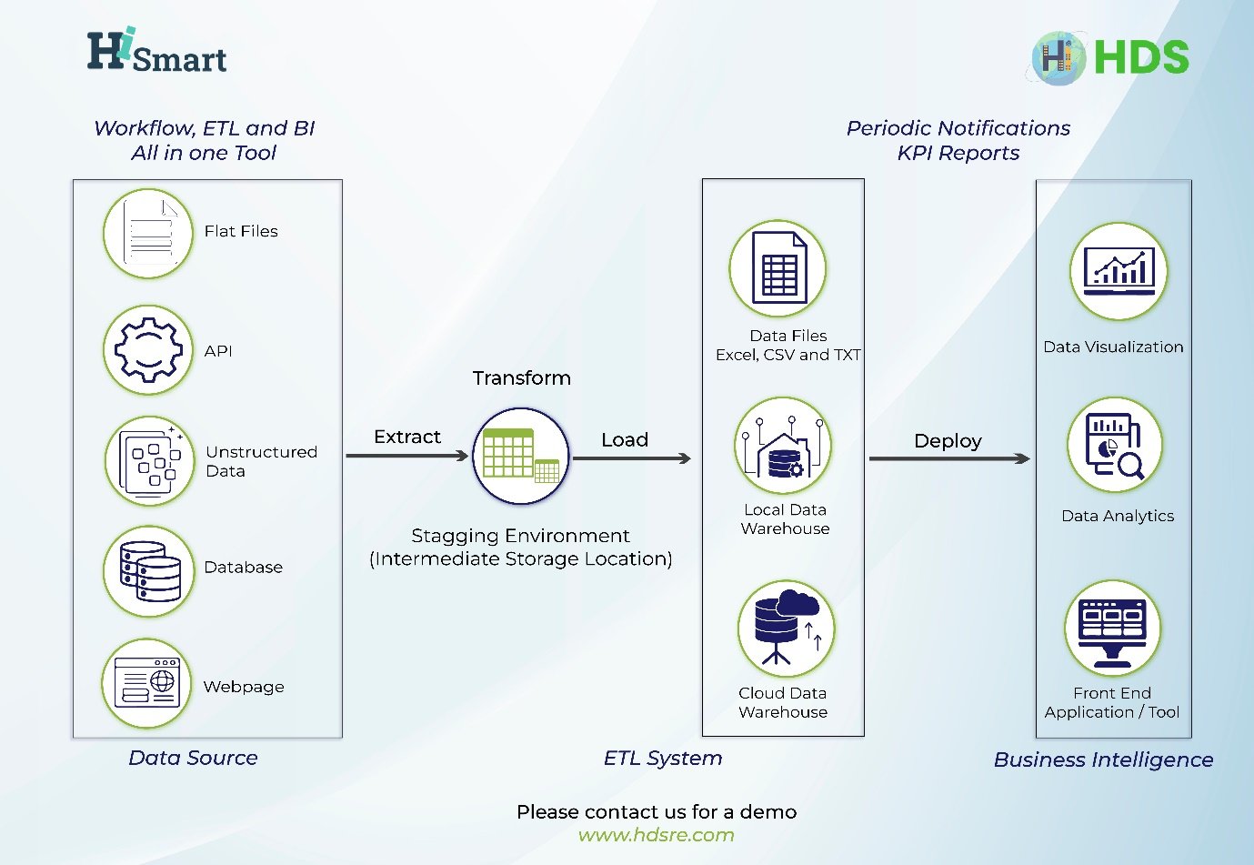 HiSmart helps each data driven clients to fulfil their business needs by managing their data effectively through our Data Integration model, Easy accessing of emails through email configuration model and measuring the data quality through Our Reporting Model. The unique feature of configuring the Business Requirements on Data Integration, Transforming the data as client expected with expected quality and minimum user effort outstands HiSmart.